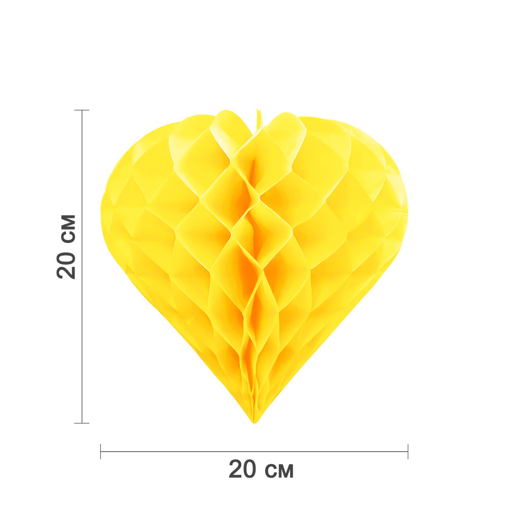 Бумажное украшение "Сердце" 20 см, желтый