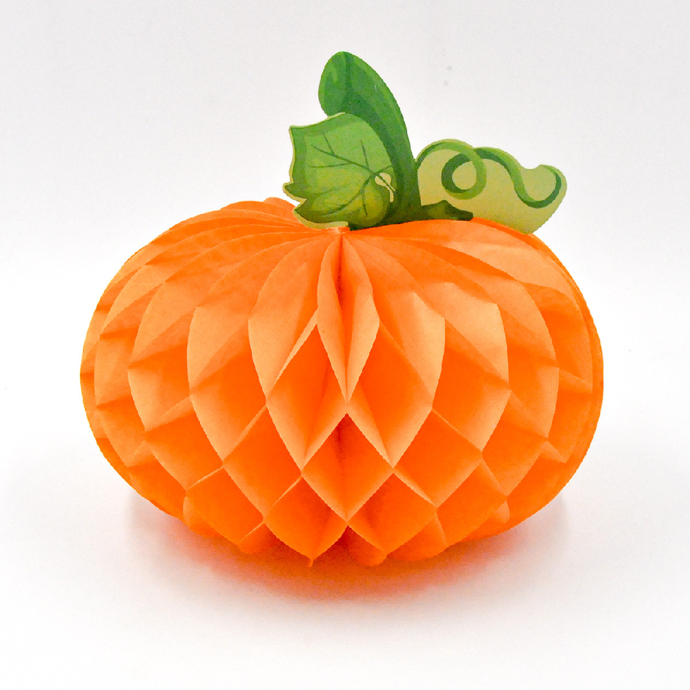 Бумажное украшение "Тыква" 20х12 см светло-оранжевый — сочный и праздничный элемент для оформления стола, фотозон, витрин и интерьера. Поставляется в сложенном виде, легко раскрывается в пышную объёмную форму.
