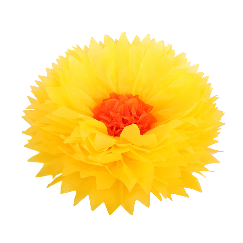 Бумажный цветок 40 см ярко-желтый+оранжевый