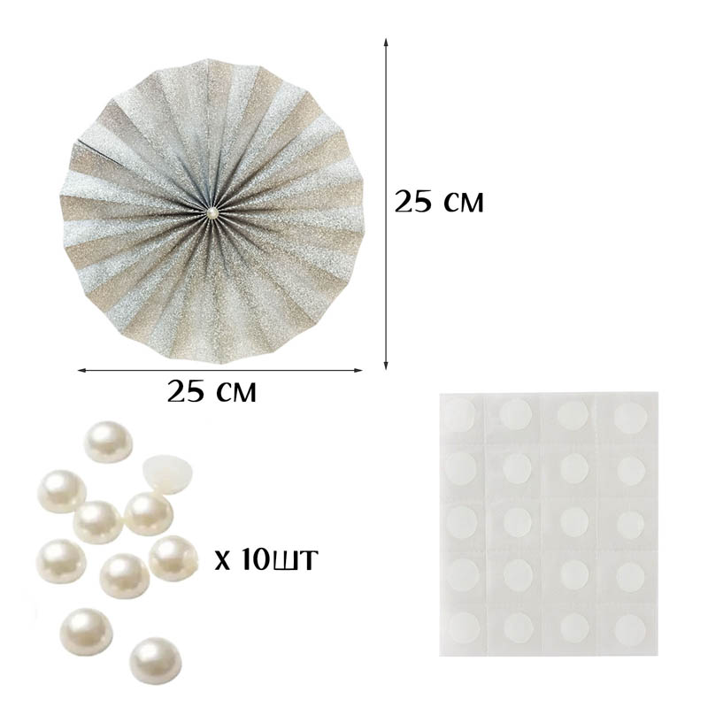 Фанты выполнены из двусторонней бумаги с устойчивым блестящим покрытием, похожим на глиттер. Главное преимущество материала в том, что он не осыпается и не шелушится, сохраняя безупречный вид до и после использования. С помощью прозрачных клейких точек бусины легко и надежно фиксируются в центре каждого фанта, позволяя собрать готовый декор за несколько минут.