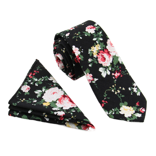 В комплект входит галстук 6х145 см и нагрудный платок 24х24 см  изготовлены из хлопка, имеют цветочный принт.