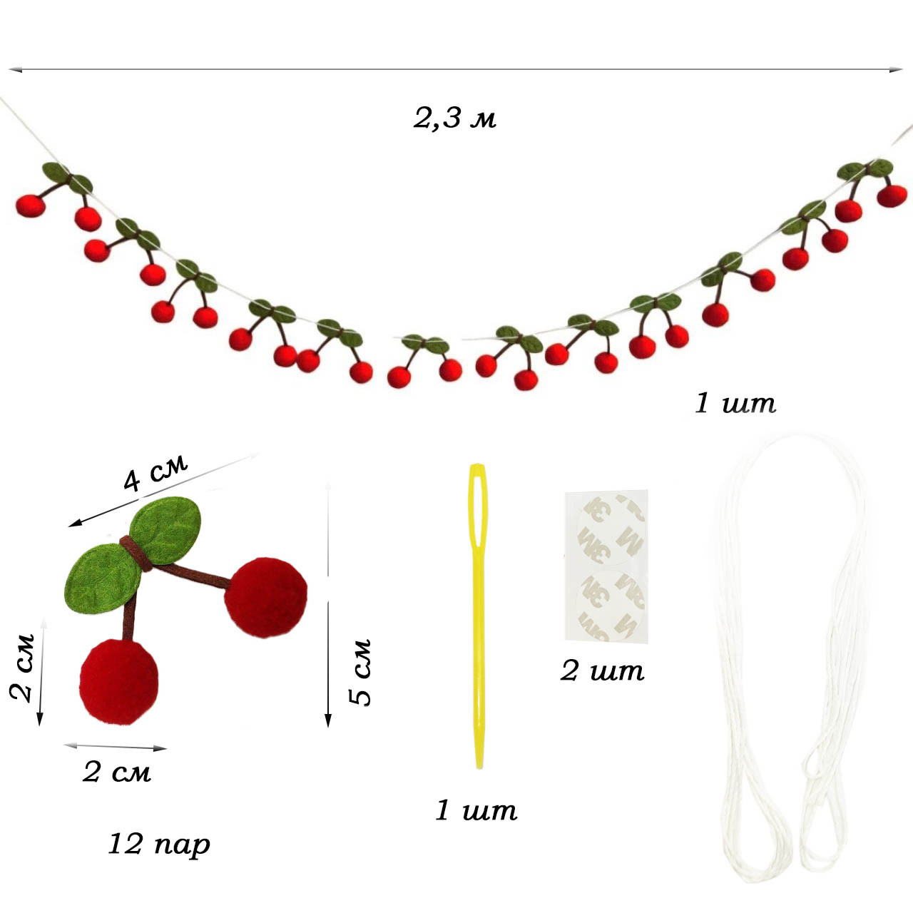 Гирлянда на веревке "Вишенки" 2,3 м, красный