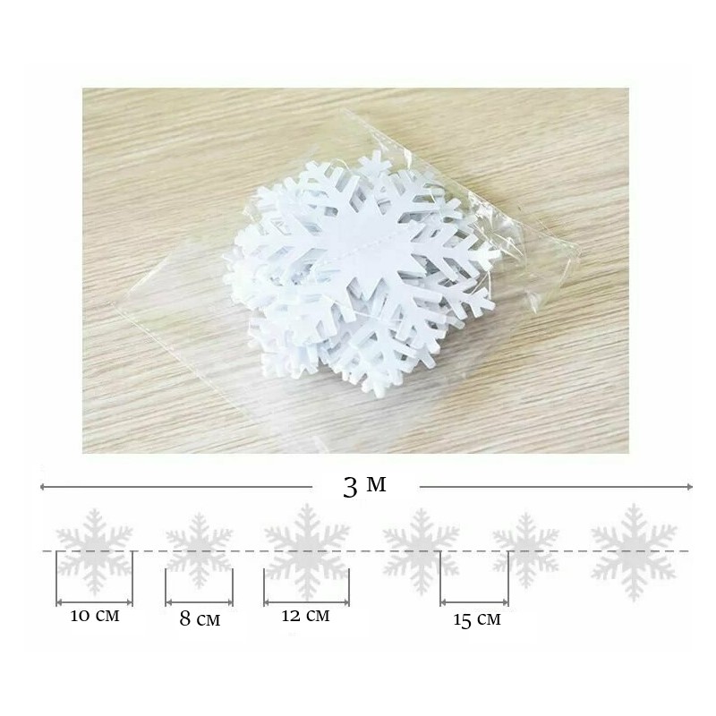 Гирлянда Снежинки 3 м 8-12 см серебро 3D
