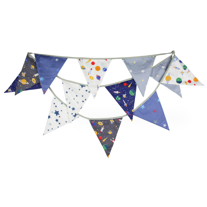 Гирлянда состоит из 12 флажков. Расстояние между флажками - 6 см, общая длина составляет 4 м.
