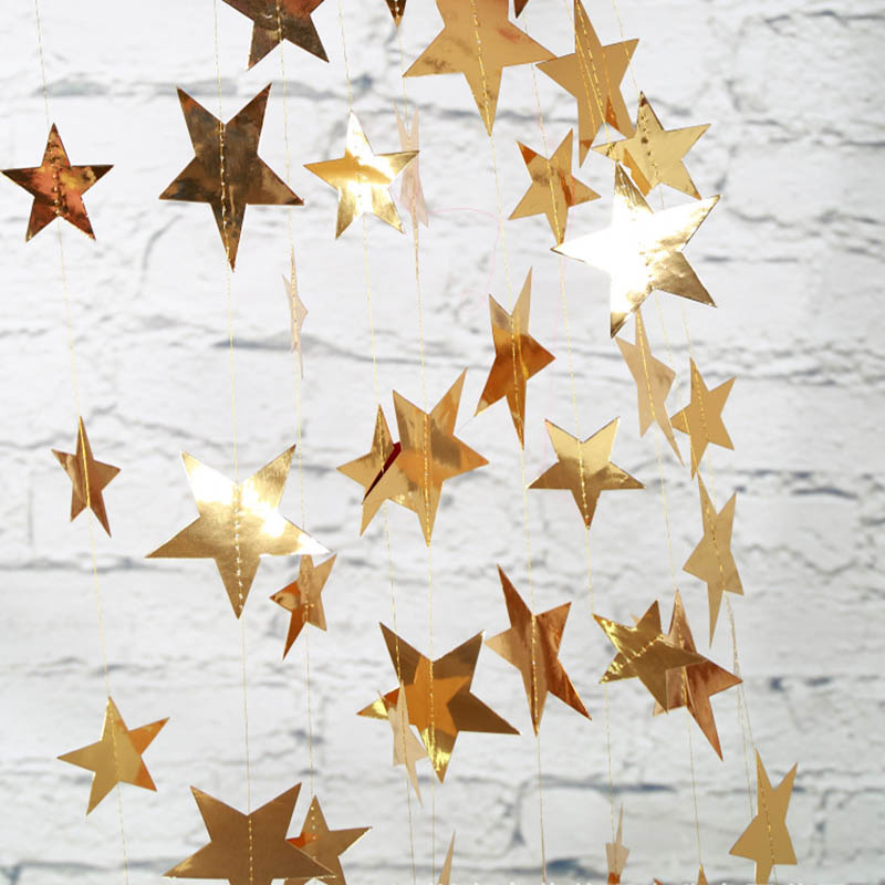 Гирлянда Звезды металлик 10 см 4 м золото