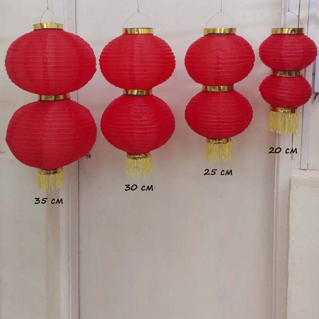 Круглый китайский фонарь состоит из двух ярусов диаметром 35 см каждый.