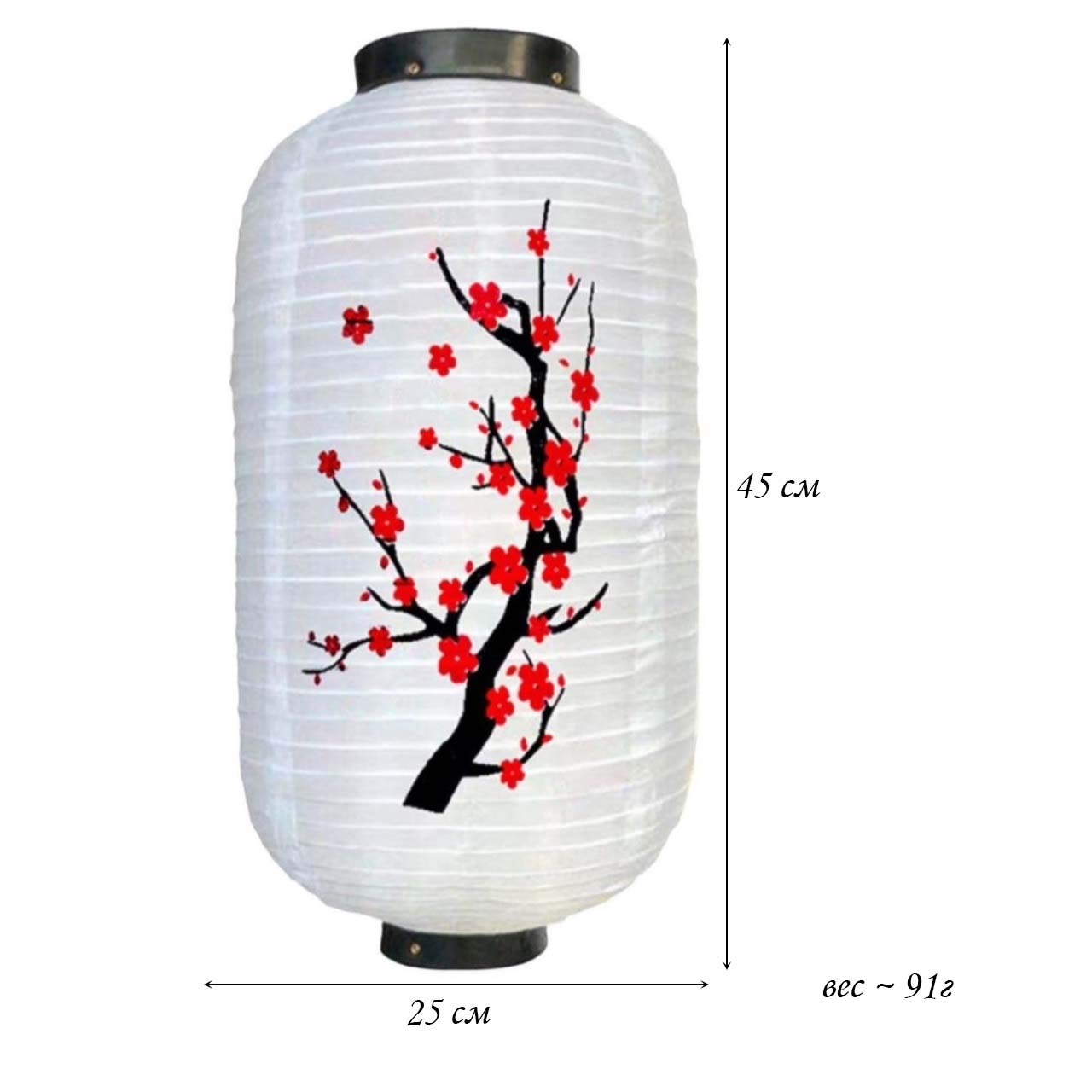 Китайский фонарь Цилиндр "Сакура" мелкая 25х45 см, белый