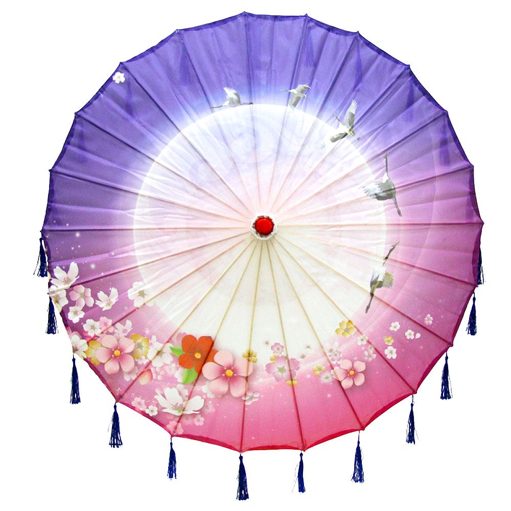 Китайские тканевые зонтики цветочные с кисточками 82х54 см