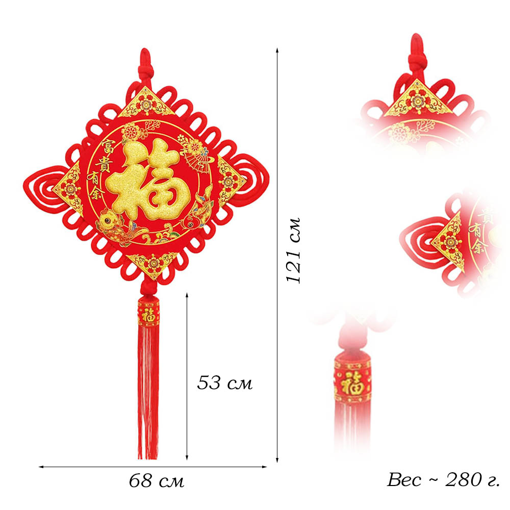 Китайский узел ромб золото НАБОР 2шт (68х112см + 23х112см) кисточка, Уют