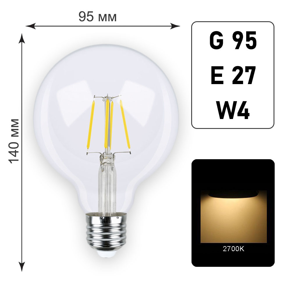 Лампа филаментная G95 E27 W4 K2700