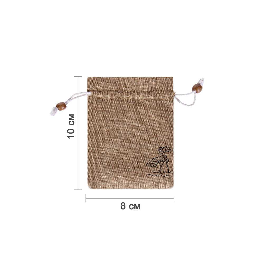 Мешочек из искусственного льна с орнаментом 8х10 см, бежевый