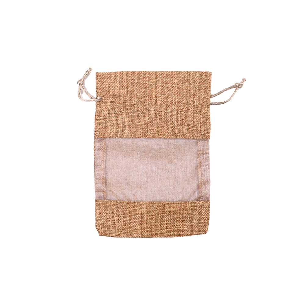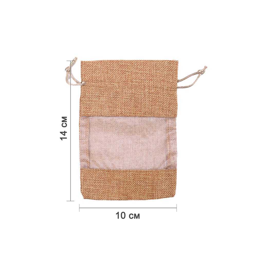 Мешочек из мешковины и органзы 10х14 см золотисто-бежевый