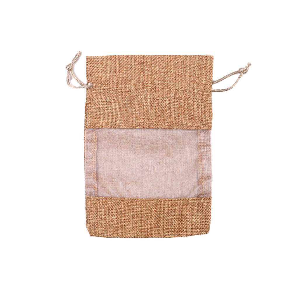 Мешочек из мешковины и органзы 13х18 см золотисто-бежевый