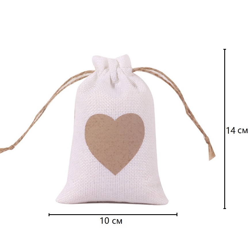 Стильный и оригинальный вариант для подарочной упаковки и хранения небольших предметов. Натуральная текстура мешковины придаёт изделию рустикальный, уютный вид, а сердечный мотив делает его особенно подходящим для подарков с душой.