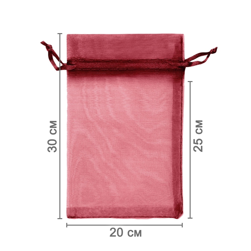 Мешочек из органзы 20 х 30 см — стильный аксессуар для упаковки средних и крупных предметов. Полупрозрачная ткань подчёркивает содержимое и придаёт аккуратный вид.