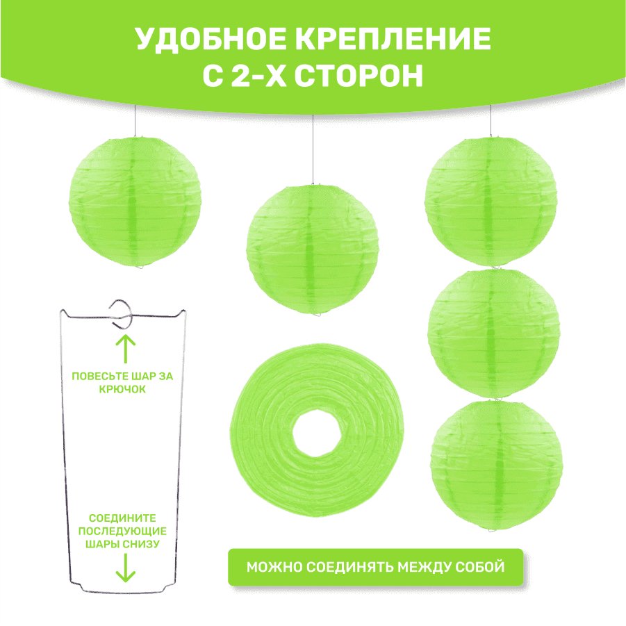 В комплект входит 8 бумажных фонариков и лента атласная.