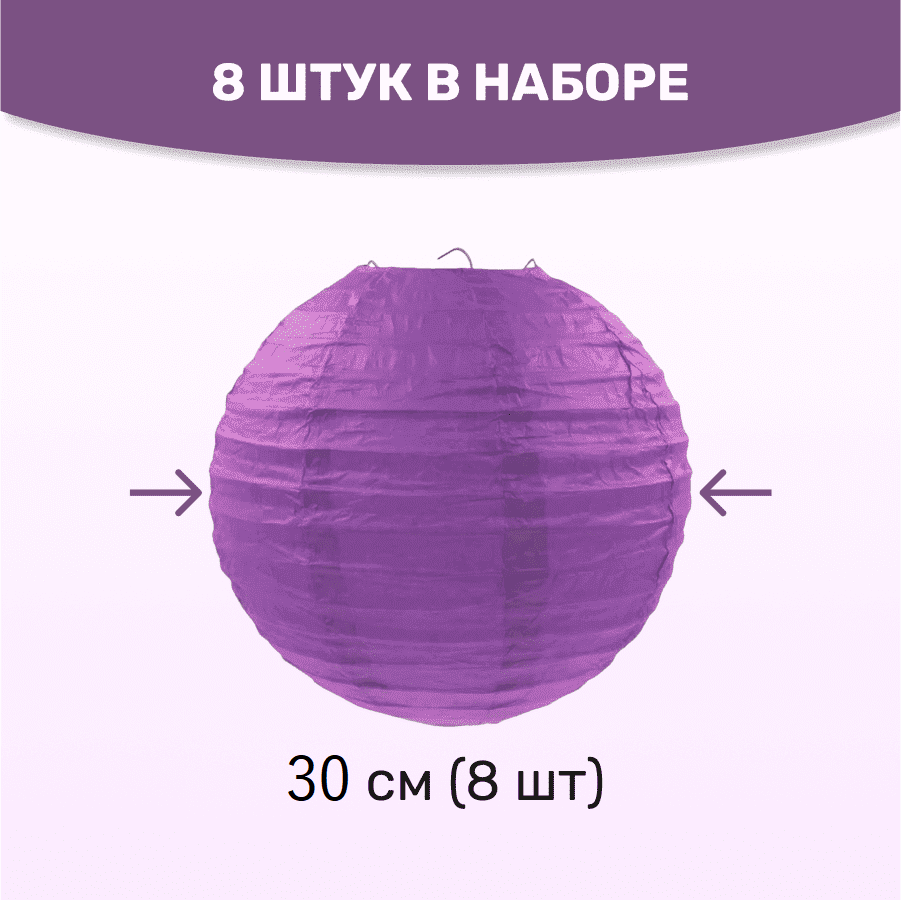 Комплект подвесные фонарики 30 см х 8 шт, сиреневый