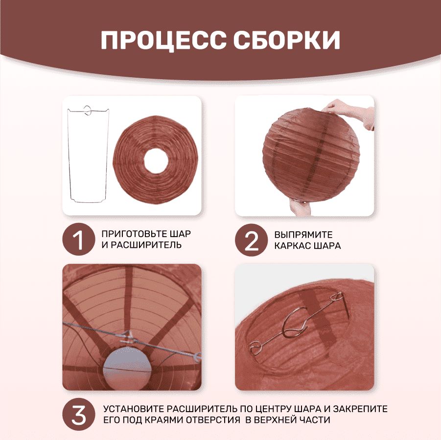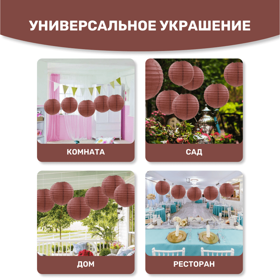 В комплекте входит 8 бумажных фонариков и лента
