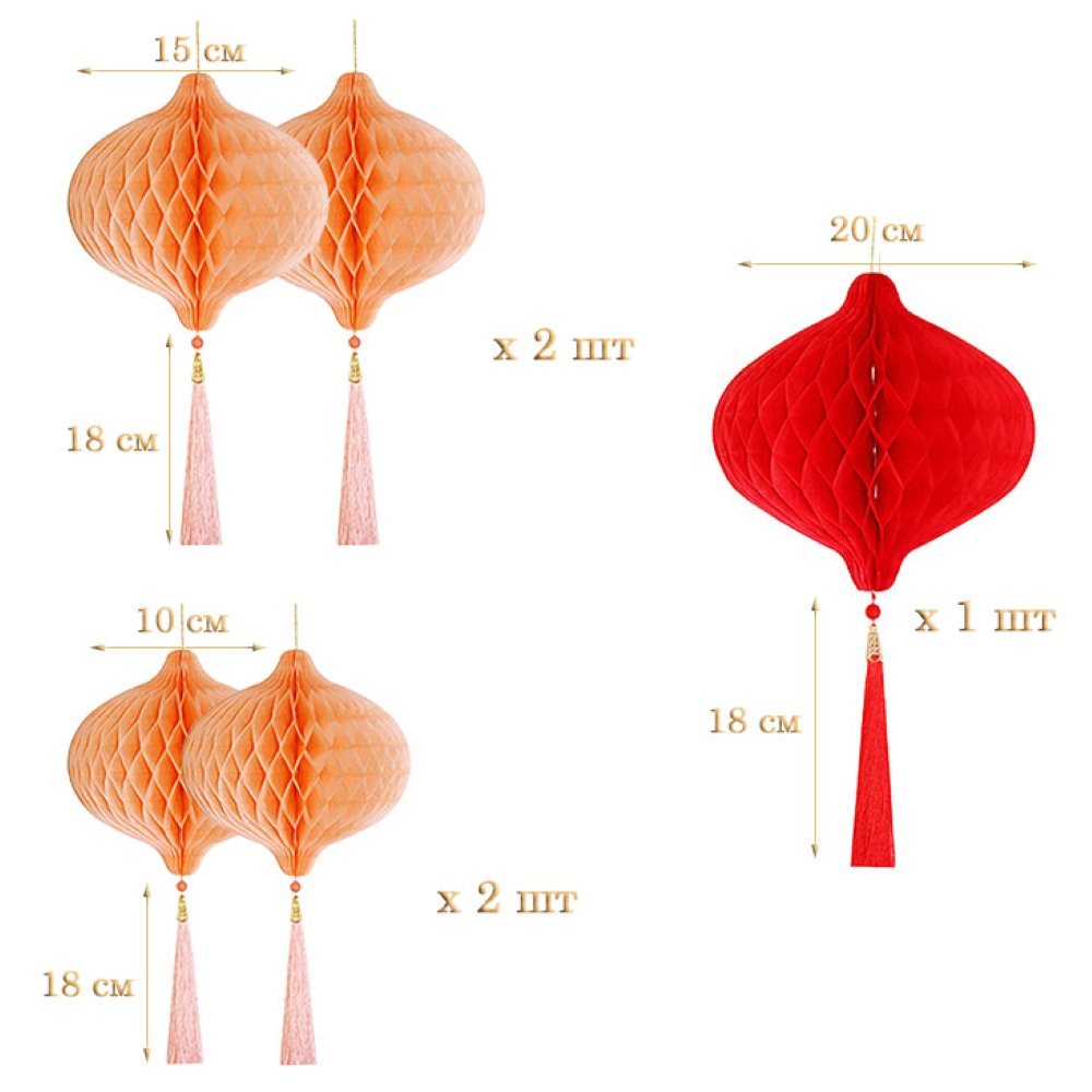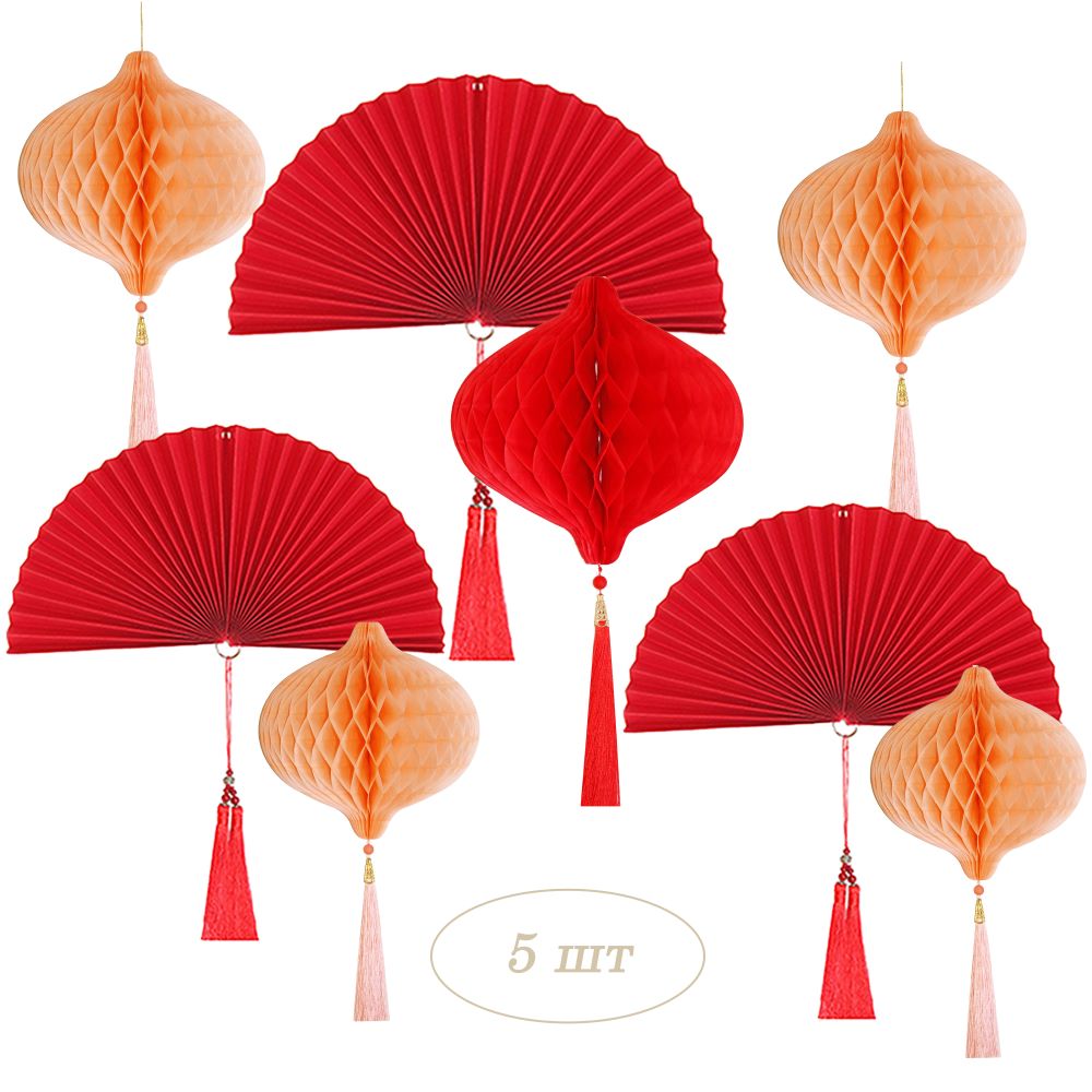 Набор украшений для праздника №73 включает пять шаров-сот и три веера-гармошки.