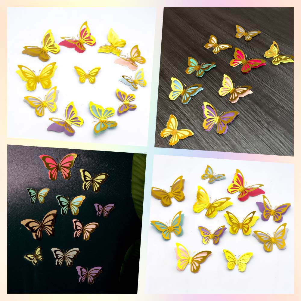 Наклейки Бабочки двойные перламутровые бумажные № 6 12 шт золото+голубой