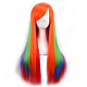 Парик радужный длинный изготовлен из современного искусственного материала.