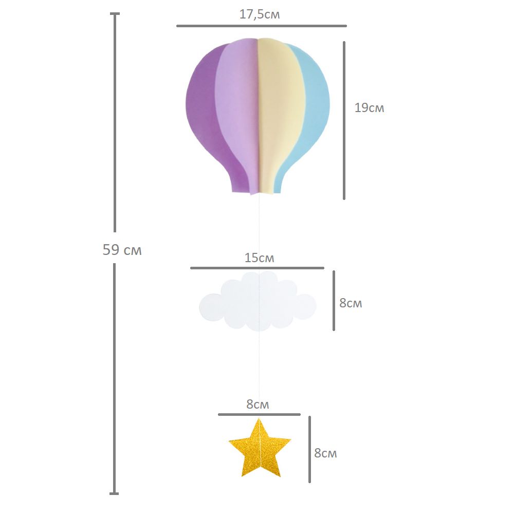 Подвеска Воздушный шар 59 см, айвори+голубой+св.сиреневый