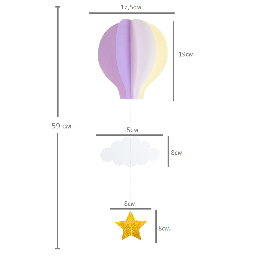 Подвеска Воздушный шар 59 см, айвори+белый+св.сиреневый