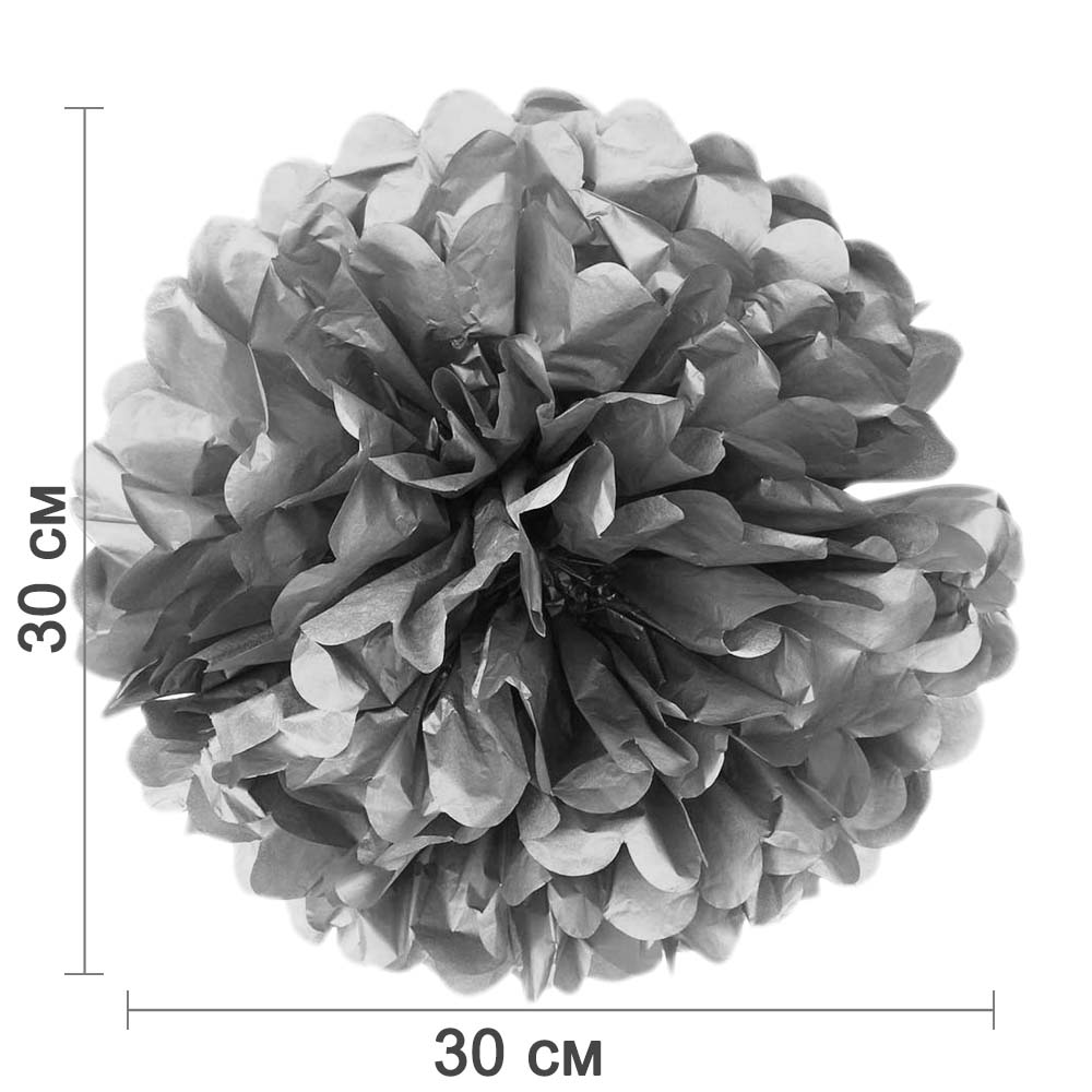 Помпон из бумаги 30 см серебро