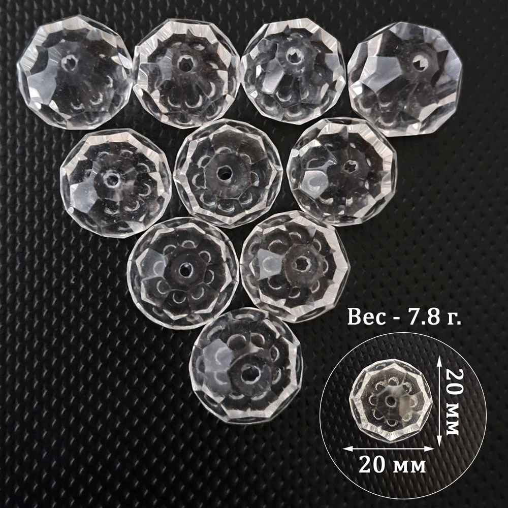 Набор прозрачных кристаллов "Граненый круг" 10 штук по 20 мм подойдет для творчества и оформления декора.