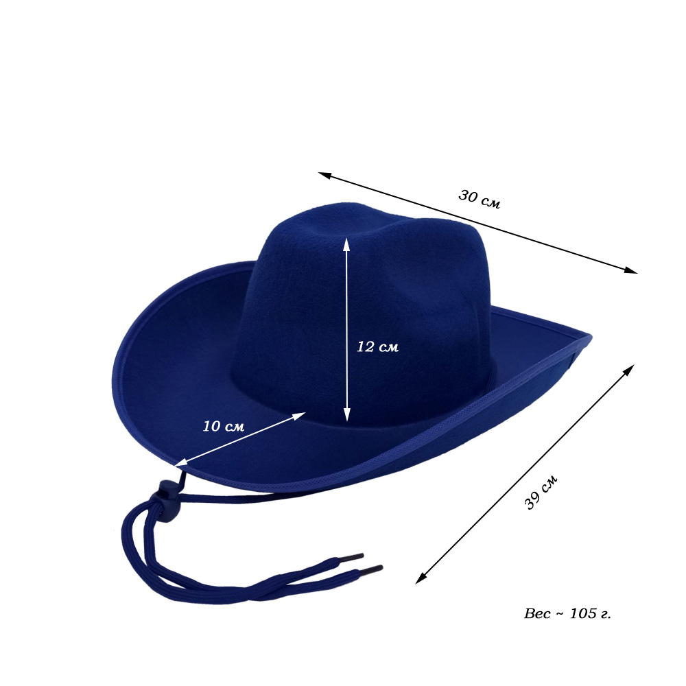 Шляпа ковбойская, синий - 1 шт.