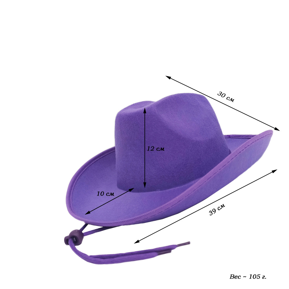 Шляпа ковбойская, сиреневый - 1 шт.