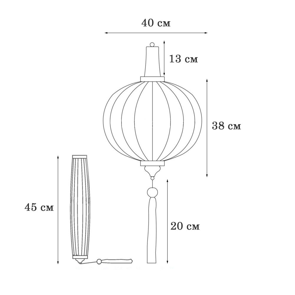 Вьетнамский фонарик 16" Шар черный 225