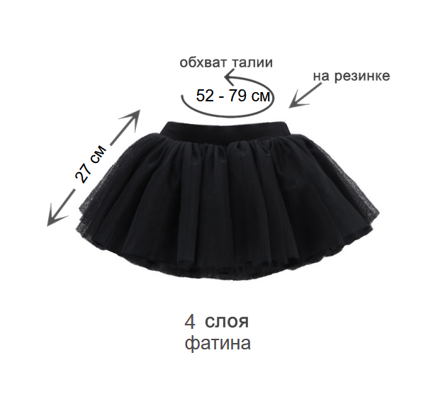 Юбка состоит из 4 слоев мягкого фатина, без подклада.
