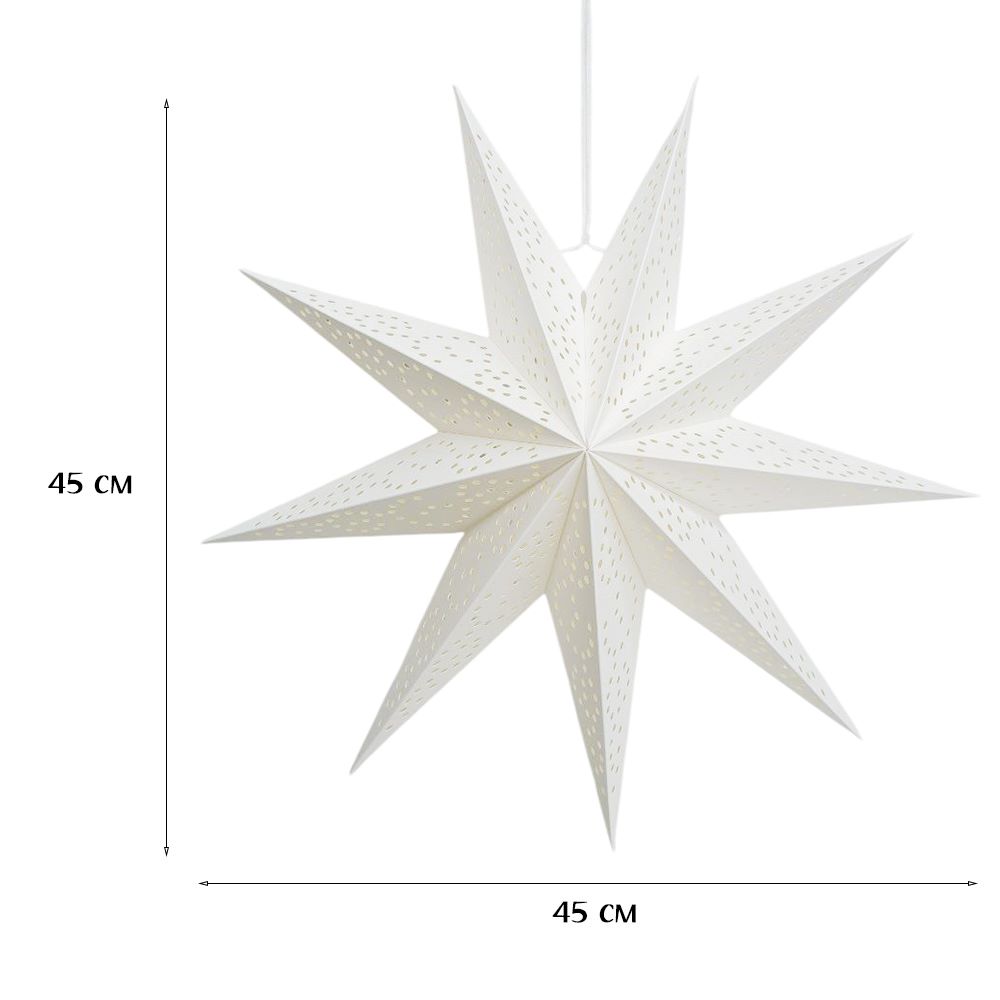 Звезда девятиконечная диаметром 45 см, изготовлена из  картона с перфорацией в виде точек.