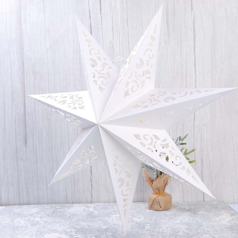 Звезда семиконечная бумажная 35 см Вензель, белый