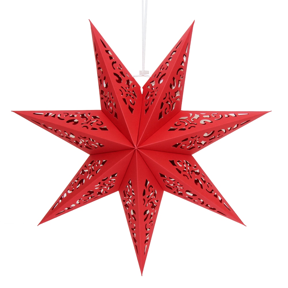 Семиконечная объемная звезда 35 см — великолепный декор из тонкого перфорированного картона. Создает красивые световые эффекты. Поставляется в сложенном виде, в комплекте шнур для фиксации объема и подвеса.